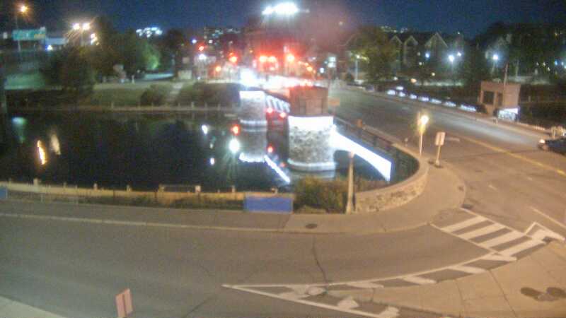 Traffic camera of the city of Ottawa, the capital of Canada, showing the traffic on the bridge of Hawthorne Avenue that crosses the Rideau Canal.