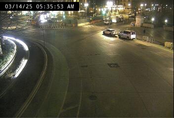 Traffic camera on Columbus Circle from Central Park South Street, near Central Park in Manhattan, NYC.Look a little further, chrome ball, representing the earth and the building behind, the Trump Hotel of Central Park.