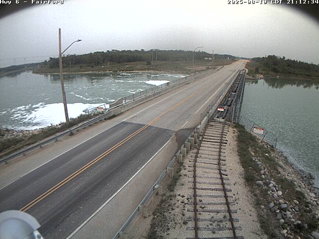 A traffic camera from the province of Manitoba on the Fairford Reserve faces north and the provincial trunk highways 6 crosses the Fairford River.