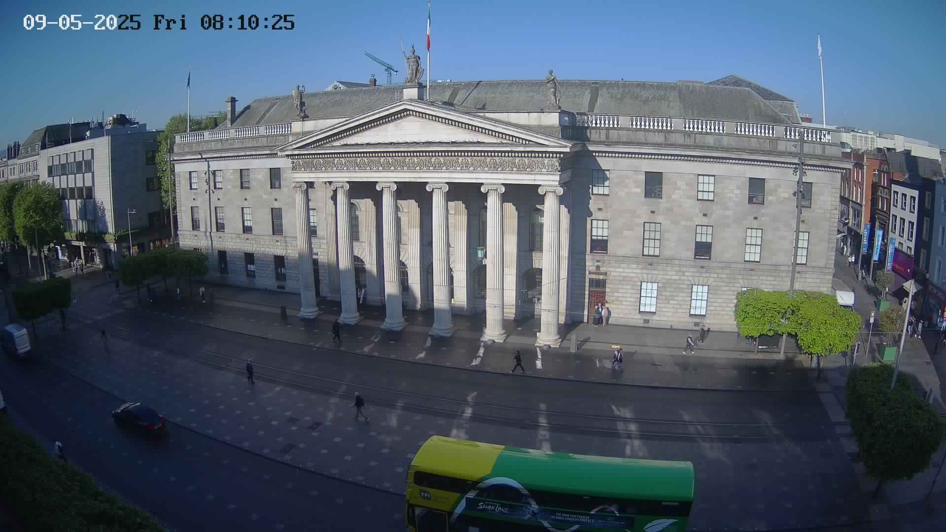 View of Dublin Central Post Office. The Georgian-style building with a six-column facade is located on one of the best-preserved streets in Ireland's capital.