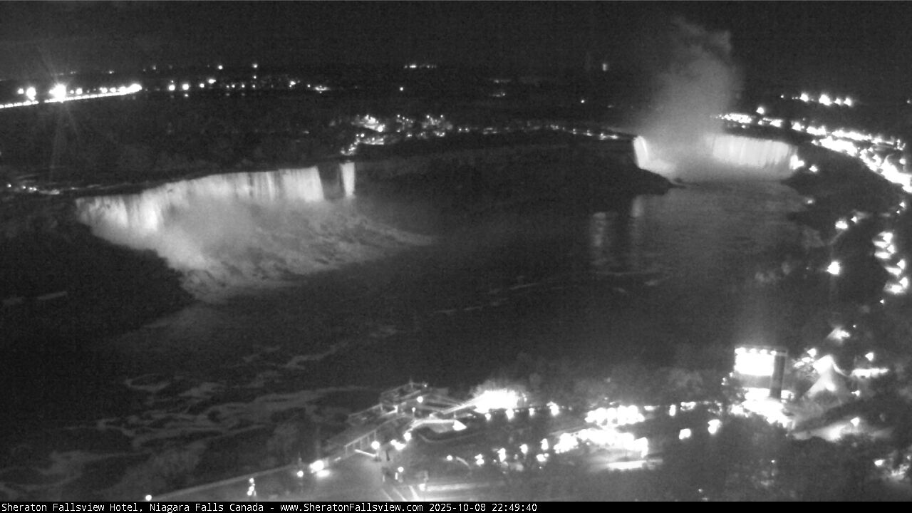 Live view of Niagara Falls from the 23rd floor of the Sheraton Hotel Niagara Falls in Canada.The Sheraton Hotel is erected just steps from Niagara Falls, the largest indoor water park and Casino Niagara.