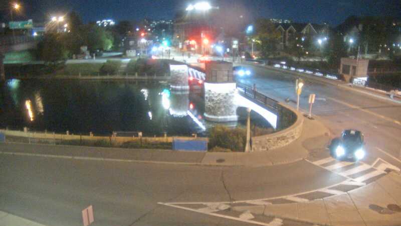 Caméra de circulation de la ville d’Ottawa, la capitale du Canada, montrant la circulation automobile sur le petit pont de l’avenue Hawthome qui traverse le canal Rideau.