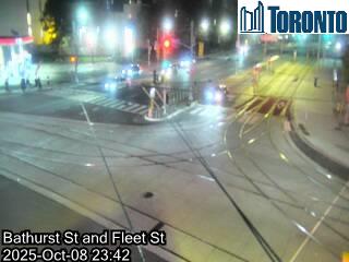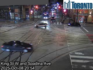 Une caméra de circulation de la ville de Toronto montre une image capturée en direct à l’intersection de l’avenue Spadina et de la rue King Ouest.