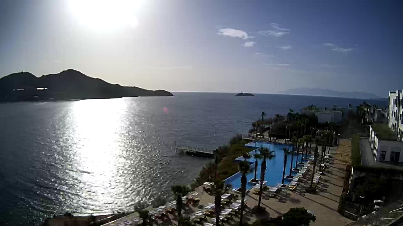Cette webcam offre une image en direct de la mer Égée à Akyarlar, un quartier de Bodrum, sur la côte égéenne de la Turquie.- Province d'Izmir