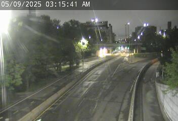 Caméra de circulation laissant voir l'entrée par la rue Sands sur la voie express Brooklyn-Queens ainsi que la piste cyclabe adjacente dans le quartier de Brooklyn.